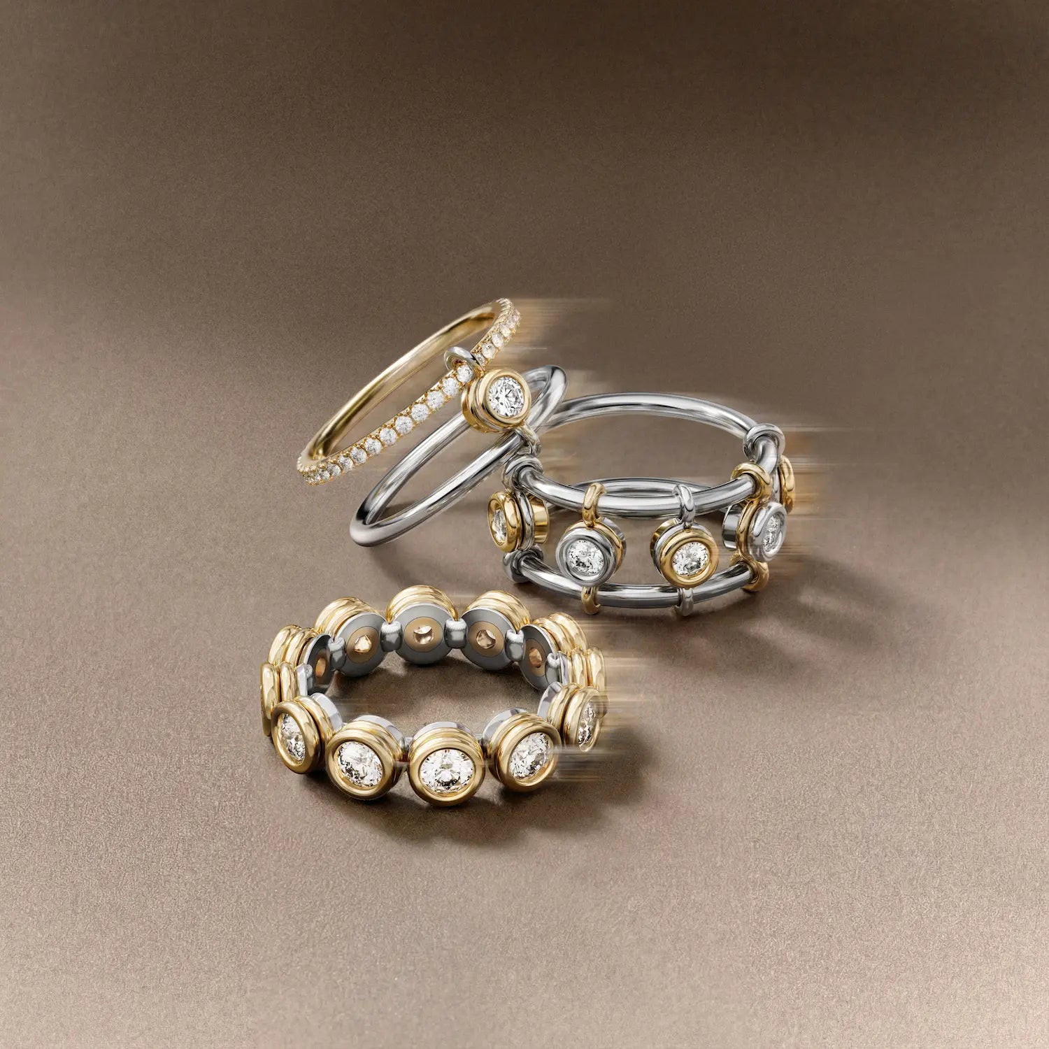 Chelsea Gabrielle approaches design as both architecture & art. The moving bezel is engineered with millimeter-level precision -- merging innovation with centuries-old craftsmanship. Clean lines, seamless connections, and calibrated weight create pieces that move as elegantly as they look